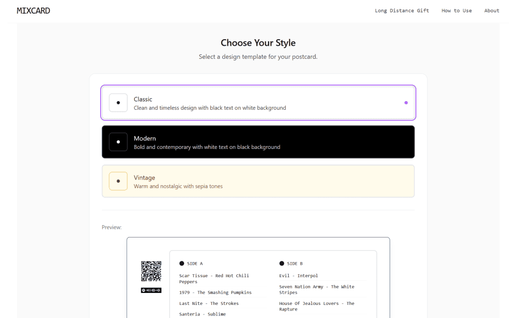 The website was later vibecoded to showcase the making of postcards via a step-by-step process, giving users a clear understanding of how their mixtape postcards were created. This transparency helped build trust with potential customers. The project’s success can be attributed to its unique blend of nostalgia and modern technology. By leveraging a simple idea and executing it well, the creators were able to tap into a sentimental market.