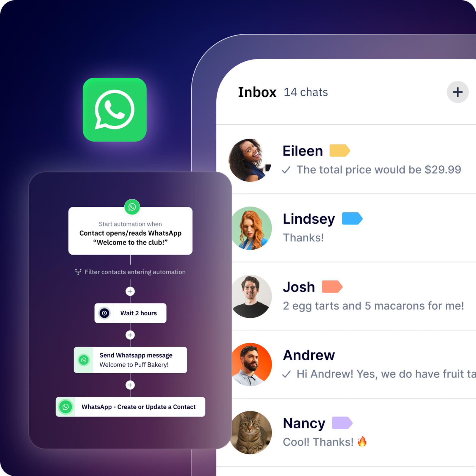 Your customers are scrolling, chatting, and engaging across apps. Meet them with personalized WhatsApp, SMS, and social messaging that keeps you top of mind with true cross-channel automation.