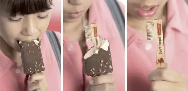 For instance, the last thing a person consuming an ice cream bar would anticipate is that the wooden stick turns out to be Colgate’s emulated toothbrush.