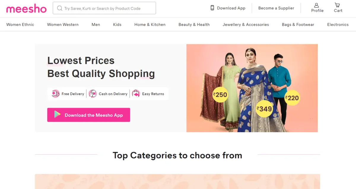 But Meesho isn’t just about social selling anymore. The company has evolved into a full-fledged e-commerce marketplace while keeping its social commerce roots. You can now shop directly on their app and website, just like any other online retailer, but with the added benefit of competitive prices and a focus on value-conscious shoppers.